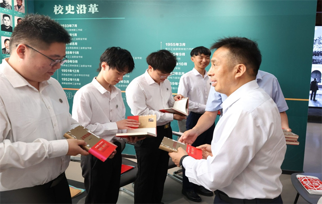 座談會后,校長劉全璽將張維為教授的《文明型國家》一書,現(xiàn)場贈送給畢業(yè)生代表,希望同學(xué)們理解并傳承其中蘊(yùn)含的深厚文化底蘊(yùn)和歷史智慧,并將這種文明精神融入到未來的工作和生活中。畢業(yè)生代表也將精心準(zhǔn)備的代表3232名畢業(yè)生的;掌磮D作品回贈母校,表達(dá)對母校的感恩之情。參會領(lǐng)導(dǎo)和老師與畢業(yè)生代表共同合影留念,祝福畢業(yè)生在未來的道路上乘風(fēng)破浪、再創(chuàng)輝煌!