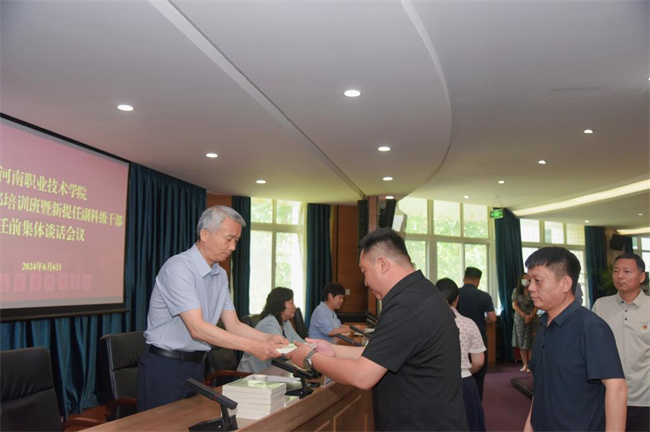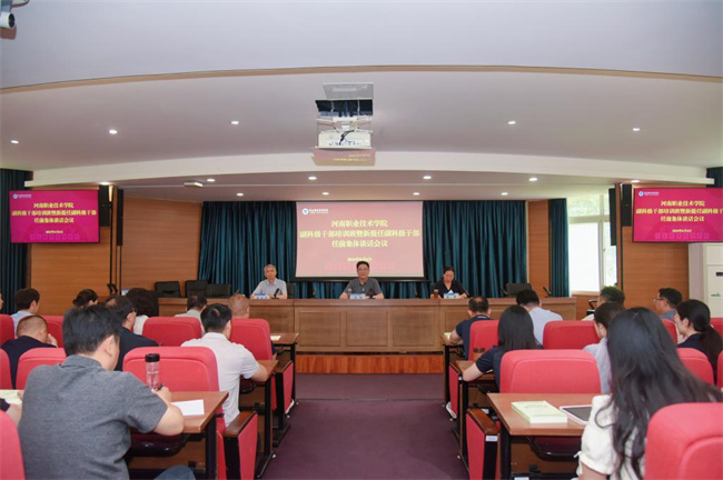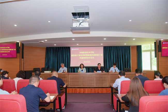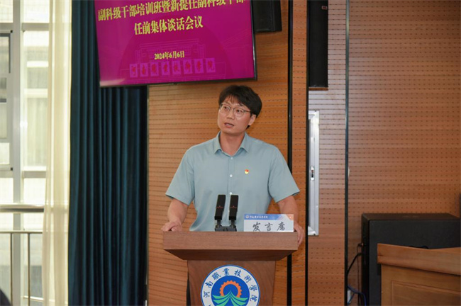 中新河南網(wǎng)6月9日電(黃金磊)6月6日,河南職業(yè)技術(shù)學(xué)院副科級干部培訓(xùn)班暨新提任副科級干部任前集體談話會議在行政樓238會議室舉行。校黨委書記厲勵、校長夏新顏、紀委書記盛興文出席會議并作講話,全體副科級干部和組織部全體人員參加會議。校黨委副書記田華主持會議并宣讀了副科級干部任命文件。