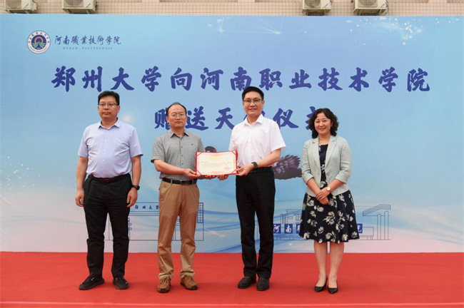 校黨委書記厲勵代表學(xué)校接收天鵝并向鄭州大學(xué)頒發(fā)捐贈證書