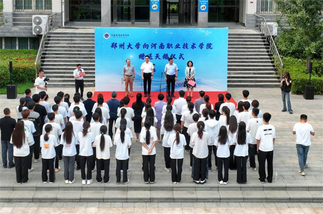 中新河南網(wǎng)6月9日電(霍書海)6月7日下午,鄭州大學(xué)向河南職業(yè)技術(shù)學(xué)院捐贈天鵝儀式在學(xué)校西明湖舉行。鄭州大學(xué)黨委副書記王利國,學(xué)校黨委書記厲勵、校長夏新顏等領(lǐng)導(dǎo)出席捐贈儀式。鄭州大學(xué)黨委宣傳部、后勤保障中心相關(guān)負(fù)責(zé)同志,學(xué)校黨政辦公室、黨委宣傳部、后勤管理處等相關(guān)部門負(fù)責(zé)同志及師生代表參加捐贈儀式。儀式由副校長任楓軒主持。