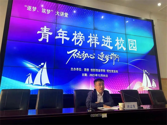2023年12月5日,唐志發(fā)回到學校參加“青年榜樣進校園”活動,與師生分享自己的創(chuàng)業(yè)路