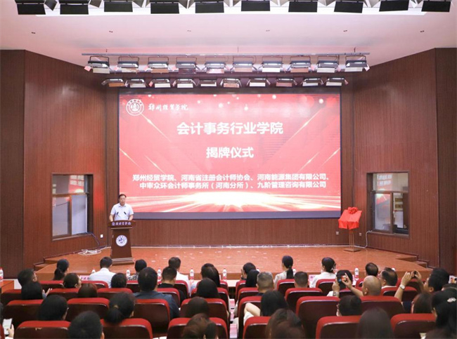 本次揭牌儀式匯聚了河南省注冊會計師協(xié)會、河南能源集團、中審眾環(huán)會計師事務(wù)所河南分所、九階管理咨詢有限公司等單位的相關(guān)負(fù)責(zé)人,以及鄭州經(jīng)貿(mào)學(xué)院校領(lǐng)導(dǎo)、各部門負(fù)責(zé)人、各二級學(xué)院院長以及會計學(xué)院師生代表。