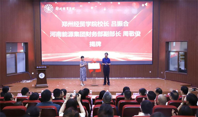 校長呂振合與河南能源集團財務(wù)部副部長周敬俊揭牌