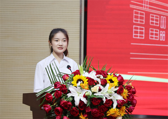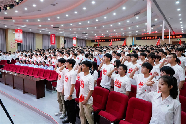 “我親愛(ài)的老師啊…感謝一路上有您…”典禮最后,9位2024屆畢業(yè)生代表以歌曲和朗誦的形式向母校和老師們表達(dá)了由衷的感謝。全體畢業(yè)生跟隨領(lǐng)誓人莊嚴(yán)宣誓:“不忘初心,追逐夢(mèng)想;牢記使命,堅(jiān)守信仰;勇?lián)?zé)任,敬業(yè)愛(ài)崗;努力爭(zhēng)做,能工巧匠;志存高遠(yuǎn),奮發(fā)向上;為人生添彩,為母校爭(zhēng)光!”全體畢業(yè)生的激昂誓言,吹響了勇攀高峰的青春號(hào)角。