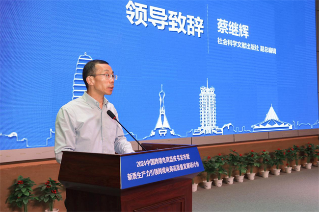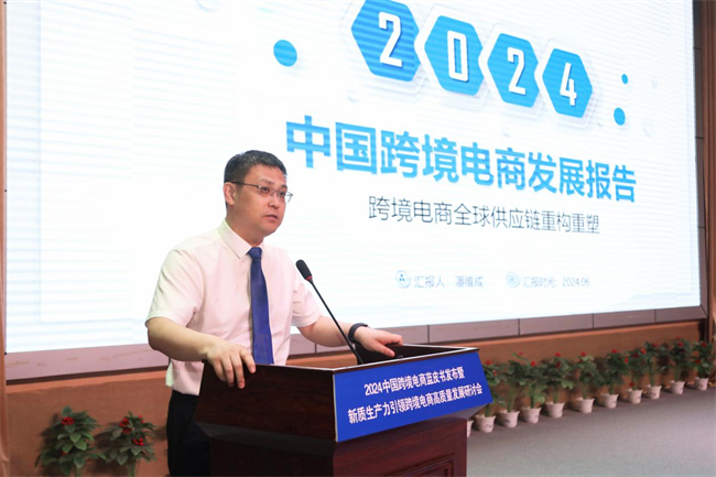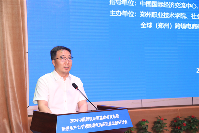 鄭州職業(yè)技術(shù)學(xué)院校長(zhǎng)潘維成介紹跨境電商藍(lán)皮書(shū)——《中國(guó)跨境電商發(fā)展報(bào)告(2024)》