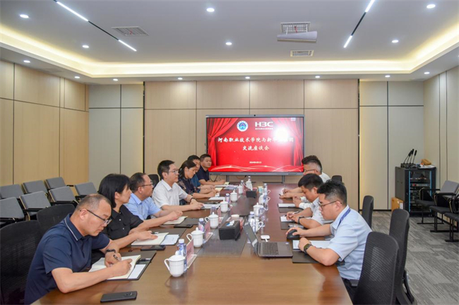 中新河南網(wǎng)6月13日電(劉愷)6月12日下午,河南職業(yè)技術(shù)學(xué)院黨委書(shū)記厲勵(lì)帶隊(duì)赴新華三集團(tuán)開(kāi)展訪(fǎng)企拓崗,并與企業(yè)相關(guān)負(fù)責(zé)人進(jìn)行座談。副校長(zhǎng)魯冬及黨政辦、招生就業(yè)處、現(xiàn)代信息技術(shù)學(xué)院相關(guān)負(fù)責(zé)人陪同參加。