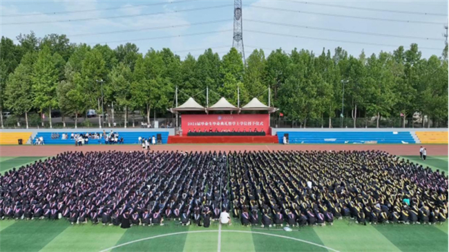 中新河南網(wǎng)6月13日電(趙雙艷) 揚帆遠(yuǎn)航啟新程,一路高歌創(chuàng)未來。6月12日,山東英才學(xué)院在南校區(qū)田徑場和北校區(qū)學(xué)術(shù)報告廳舉辦2024屆畢業(yè)生畢業(yè)典禮暨學(xué)士學(xué)位授予儀式。學(xué)校全體在校領(lǐng)導(dǎo)班子成員出席畢業(yè)典禮并為畢業(yè)生授予學(xué)位;各二級學(xué)院院領(lǐng)導(dǎo)、學(xué)位委員會成員、教師代表、畢業(yè)班輔導(dǎo)員、2024屆畢業(yè)生等參加了典禮。畢業(yè)典禮由學(xué)校常務(wù)副校長劉衛(wèi)東主持。