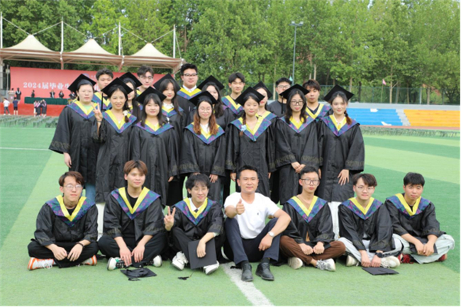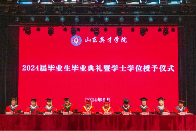 黨委副書記孫玉香宣讀了山東英才學(xué)院關(guān)于2024屆學(xué)生畢業(yè)和畢業(yè)生學(xué)士學(xué)位授予的文件。校領(lǐng)導(dǎo)和學(xué)位委員會成員為本科畢業(yè)學(xué)生撥穗、授予學(xué)位并合影留念。