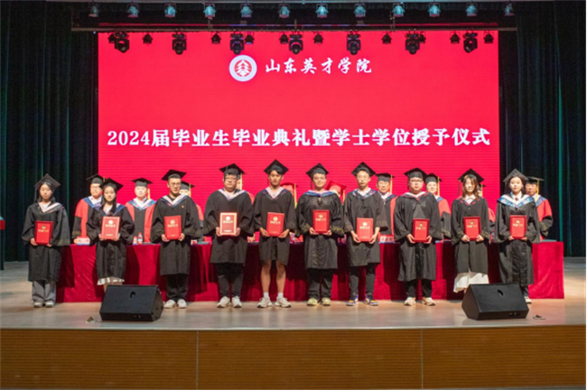 伴隨著雄壯激昂的國歌聲,畢業(yè)典禮正式開始。副校長崔奎勇宣讀了《山東英才學(xué)院關(guān)于表彰2024屆優(yōu)秀畢業(yè)生的決定》,與會領(lǐng)導(dǎo)為獲得2024屆校級、省級優(yōu)秀畢業(yè)生代表頒獎。