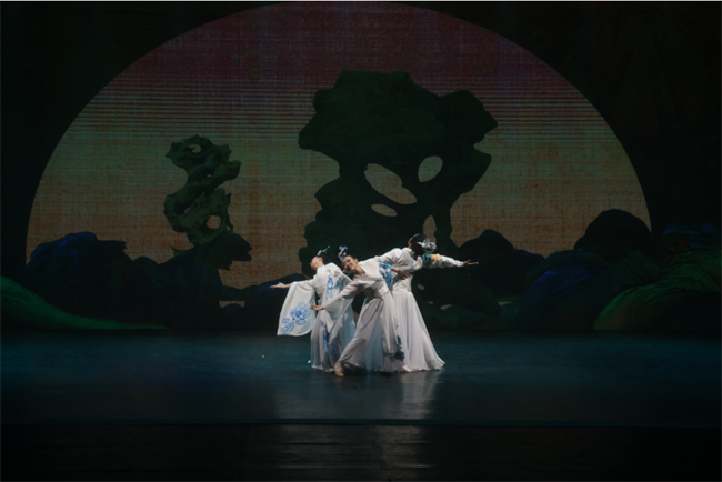 自著手打造該劇目以來,學校黨委高度重視,從最初的立意到后期的排練,從服化道的設計到舞美的審定,學校都給予人力物力財力的大力支持。黨委書記沈潔霞、校長何新等校領導多次親臨排練現場勉勵學生、查看排練進度并提出意見建議。參加排練演出的師生們,不怕苦不怕累,一遍又一遍,一天又一天,經歷無數次的集訓,修改無數次的動作。訓練中不僅有汗水與傷痛,更有歡樂與感動。