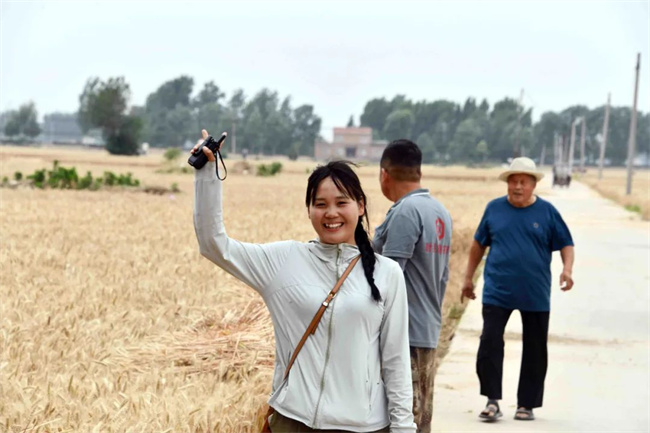 2024年6月4日下午,杜夢園正在新鄉(xiāng)長垣大李莊村一塊麥田地收割作業(yè),迎來了幾個“不速之客”——平頂山市團委書記翟羽佳一行。
