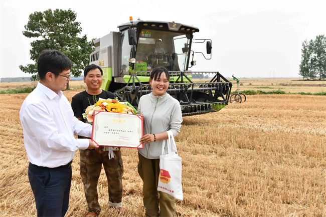 “在異鄉(xiāng)麥田里被授予這個榮譽,真令我難忘。我會更加努力,一邊幫助我爸開好收割機,一邊把助農(nóng)直播更好地做下去。”
