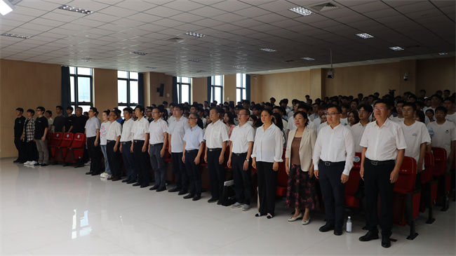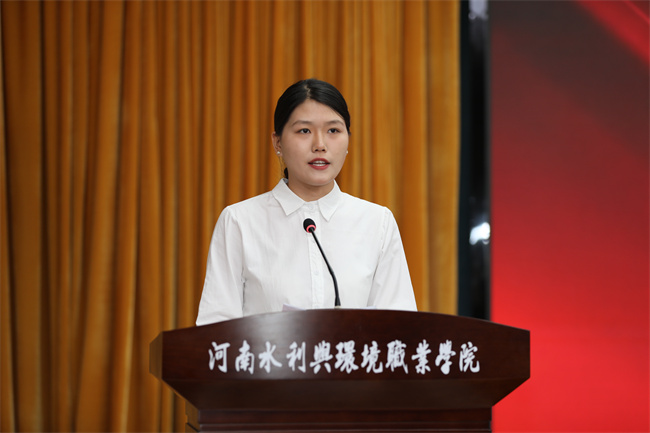 教師代表環(huán)境工程系主任張劍在發(fā)言中表示,希望同學(xué)們始終秉承校訓(xùn)、弘揚校風(fēng),做到勤于學(xué)習(xí)、善于思考、強技成才,為中華民族偉大復(fù)興貢獻青春力量。
