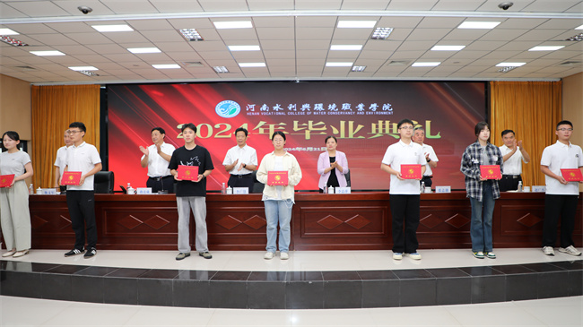 上午9時,典禮在雄壯的國歌聲中拉開帷幕。黨委副書記、工會主席魏義軍宣讀了《河南水利與環(huán)境職業(yè)學(xué)院關(guān)于表彰2024年優(yōu)秀畢業(yè)生的決定》;蔣彥成介紹了2024屆畢業(yè)生情況。校領(lǐng)導(dǎo)為優(yōu)秀畢業(yè)生代表頒發(fā)榮譽證書、為畢業(yè)生代表頒發(fā)畢業(yè)證書,F(xiàn)場氣氛莊重?zé)崃摇?/p>