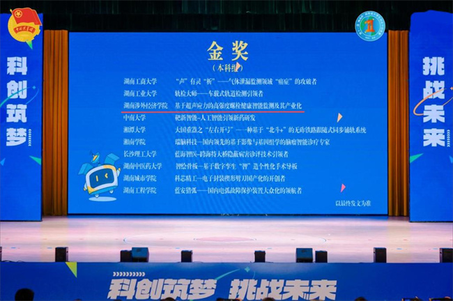 中新河南網(wǎng)6月26日電 6月21日至24日,第十一屆“挑戰(zhàn)杯”湖南省大學(xué)生創(chuàng)業(yè)計劃競賽終審決賽在湖南信息學(xué)院舉行。由湖南涉外經(jīng)濟(jì)學(xué)院信息與機(jī)電工程學(xué)院陳繼鋒院長、劉紅華教授、陳蘭鑫老師指導(dǎo),項目負(fù)責(zé)人邵政熙,團(tuán)隊成員劉清琪、馬李洋、魏爽等同學(xué)共同完成的《基于超聲應(yīng)力的高強(qiáng)度螺栓健康智能監(jiān)測及其產(chǎn)業(yè)化》項目榮獲該賽事本科組金獎,是該校在該賽事上首次實現(xiàn)省級金獎的突破。此外,該!都t色研學(xué)助力彭德懷故里金色發(fā)展》項目、《明志書屋——打造面向未來的鄉(xiāng)村智慧教育空間》項目、《綠色“塑”造——無污染可降解塑料創(chuàng)新者》項目、《銀色記事館——記錄“老英雄”傳奇的人生》項目在本次大賽上同樣獲得了省級銅獎的好成績。