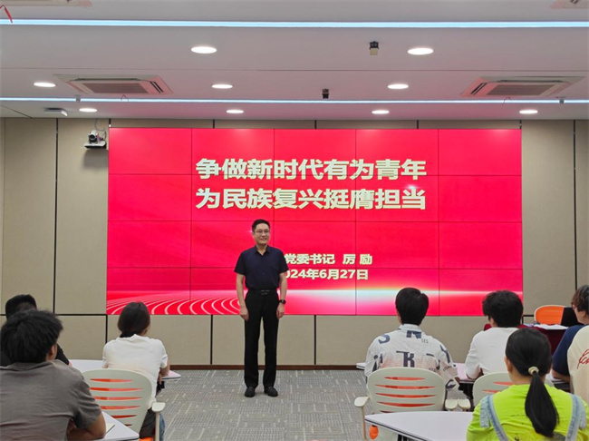 厲勵用生動的語言和豐富的案例,從“生逢其時、無比榮幸;殷殷囑托、寄予厚望;責無旁貸、勇挑重擔;直面挑戰(zhàn)、挺膺擔當;踔厲奮發(fā)、綻放青春”五個方面展開講述,叮囑同學們“生逢盛世,當不負盛世;生逢其時,當奮斗其時”,要堅定理想信念,腳踏實地,行穩(wěn)致遠。同時鼓勵同學們要感黨恩、聽黨話、跟黨走,勇擔時代使命,既要做有理想、敢擔當、能吃苦、肯奮斗新時代好青年,又要做全面建成社會主義現代化強國的建設者、見證者、參與者和推動者。