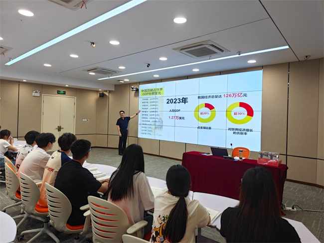 中新河南網6月28日電(谷世飛) 6月27日上午,河南職業(yè)技術學院黨委書記厲勵以“爭做新時代有為青年 為民族復興挺膺擔當”為題,為現代信息技術學院移動應用開發(fā)231班同學,講了一堂政治上有高度、理論上有深度、情感上有溫度、知識上有廣度的思政課。