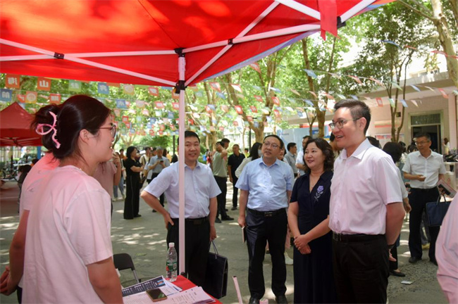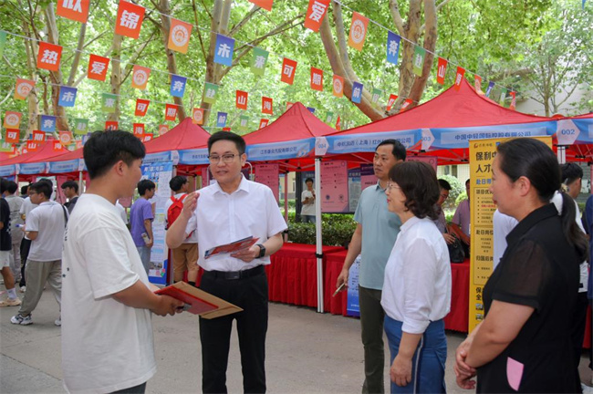中新河南網(wǎng)6月29日電(王紅勝) 6月28日,河南職業(yè)技術(shù)學(xué)院舉辦2024屆畢業(yè)生夏季雙選會(huì)暨“宏志助航”專場(chǎng)招聘會(huì),鄭州宇通集團(tuán)有限公司等148家省內(nèi)外優(yōu)質(zhì)企業(yè)前來(lái)招聘,提供就業(yè)崗位1.5萬(wàn)余個(gè)。校黨委書記厲勵(lì)、校長(zhǎng)夏新顏等全體校領(lǐng)導(dǎo)深入雙選會(huì)現(xiàn)場(chǎng)了解招聘情況,并與畢業(yè)生和企業(yè)代表進(jìn)行交流。