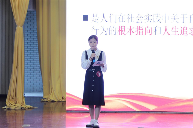 本次活動由校黨委宣傳統(tǒng)戰(zhàn)部、馬克思主義學(xué)院共同舉辦。來自各學(xué)院的學(xué)生積極報名、踴躍參賽,經(jīng)過前期初賽和復(fù)賽,最終有14名同學(xué)入圍決賽。在決賽的賽場上,選手們圍繞中國夢、傳統(tǒng)文化、生態(tài)文明、國家安全等主題,為師生們呈現(xiàn)了一場精彩紛呈的展示。他們運用思政課上的所學(xué)、所思、所悟,結(jié)合豐富鮮活的典型案例,以嚴(yán)謹(jǐn)?shù)膽B(tài)度、飽滿的熱情和富有感染力的語言,展現(xiàn)了新時代大學(xué)生飽滿的精神面貌和強(qiáng)烈的責(zé)任感、使命感,獲得了現(xiàn)場師生的陣陣掌聲。