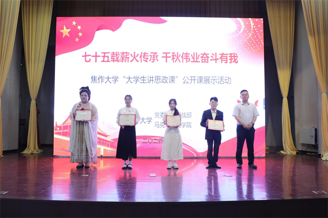 本次活動是學(xué)校深化新時代高校思政課改革創(chuàng)新的有益嘗試,也是構(gòu)建好“大思政課”全面育人新格局的重要抓手。今后,學(xué)校將繼續(xù)增強(qiáng)思政課的思想性、理論性和生動性,充分發(fā)揮大學(xué)生的積極性、主動性和創(chuàng)造性,持續(xù)鞏固思政課程和課程思政的成果成效,加強(qiáng)思想教育,擦亮育人底色,努力培養(yǎng)出擔(dān)當(dāng)民族復(fù)興大任的時代新人,培養(yǎng)出更多德智體美勞全面發(fā)展的社會主義建設(shè)者和接班人。(焦作大學(xué)供稿)
