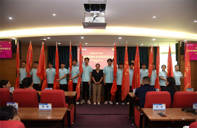 中新河南網7月5日電(靳兵) 7月4日上午,河南職業(yè)技術學院2024年暑期“三下鄉(xiāng)”社會實踐啟動暨實踐團隊授旗儀式在行政樓238會議室舉行。校黨委副書記田華出席儀式并為13支暑期社會實踐團隊的學生代表授旗。黨委宣傳部、黨委學工部、校團委等部門負責同志,各二級學院黨總支書記、副書記、團總支書記及140余名社會實踐團隊師生代表參加儀式。
