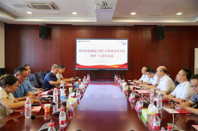 湖南吉利汽車職業(yè)技術(shù)學(xué)院校長(zhǎng)一行到湖南涉外經(jīng)濟(jì)學(xué)院考察交流