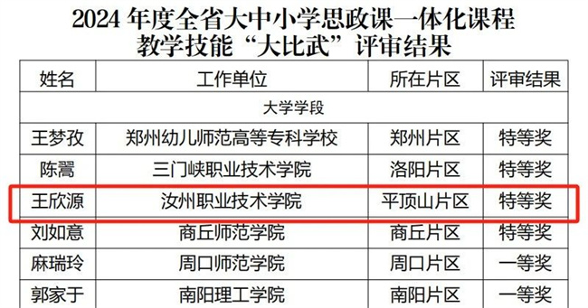 回顧這場難忘的比賽,王欣源老師感慨頗多,她說,從市級(jí)選拔賽到省級(jí)初賽,再到現(xiàn)場決賽,兩個(gè)多月的比賽過程,其實(shí)是一次次自我重塑,不斷提升的過程,通過不斷精心打磨,來找到適合自己的風(fēng)格和特色,把課講得更有意思,有溫度,讓學(xué)生愛聽,喜歡聽。功夫不負(fù)有心人,在平頂山片區(qū)選拔賽中,王欣源老師得到了評(píng)審專家的一致好評(píng),在全市七所參賽高校中獲得第一名。此次省級(jí)決賽,近百位思政課教師同臺(tái)競技,王欣源老師再次憑借扎實(shí)的專業(yè)素養(yǎng)和過硬的教學(xué)技能,脫穎而出,榮獲特等獎(jiǎng)。