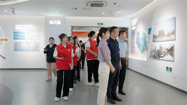 揭牌儀式結(jié)束后,與會領(lǐng)導(dǎo)和鄭州經(jīng)貿(mào)學(xué)院“黨團隊一體化思想引領(lǐng)實踐團”的學(xué)生一行參觀了尉氏縣城市展覽館。參觀結(jié)束后,張超對參加社會實踐的同學(xué)們表示慰問并提出三點希望:一要堅持理論與實踐相結(jié)合,在實踐中學(xué)習(xí)、在學(xué)習(xí)中實踐,在調(diào)研中思考、在思考中調(diào)研;二要真正深入基層一線,走村入戶、吃苦受累、求真學(xué)問、練真本領(lǐng);三要講政治、守紀律、重安全、求實效,確保社會實踐活動取得實實在在的成績。未來幾天,實踐團隊將通過老黨員訪談、座談交流、參觀文史紀念館、理論宣講、愛心送教等多種形式開展實踐活動。(鄭州經(jīng)貿(mào)學(xué)院供稿)