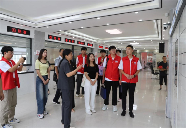 座談交流踐初心,共探法治明方向。7月10日下午,實踐團在法院工作人員的帶領(lǐng)下“沉浸式”參觀了川匯區(qū)人民法院,“零距離”接觸并了解法院工作,感受法律威嚴(yán)和司法公正。實踐團與法院工作人員開展座談交流,深入了解基層法治現(xiàn)狀,聽取了他們對下一步工作開展的建議,為合理有效地開展下鄉(xiāng)普法活動奠定了扎實的基礎(chǔ)。