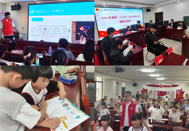 法治教育防“未然”,學(xué)法課堂護成長。7月12日,實踐團成員對村內(nèi)留守兒童開展普法課堂,結(jié)合身邊真實案例講授法律知識,同時創(chuàng)新形式,帶領(lǐng)兒童共同繪制法治主題手抄報、一同學(xué)習(xí)民法典手勢舞、一起參演模擬法庭,以通俗易懂、孩子們喜聞樂見的方式幫助當(dāng)?shù)貎和瘜W(xué)習(xí)法律知識,讓法治意識在每一個兒童心中生根發(fā)芽,用法治力量護航未成年人的健康成長。