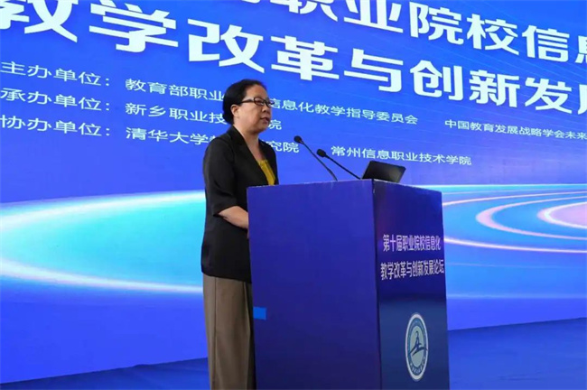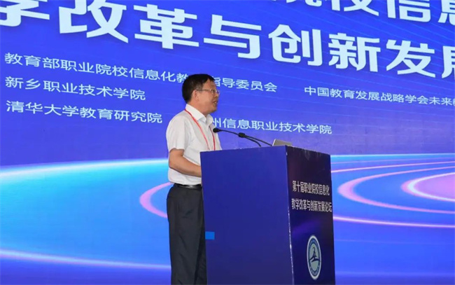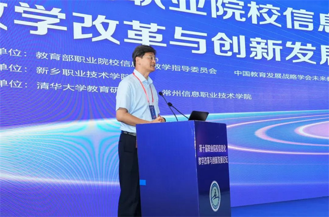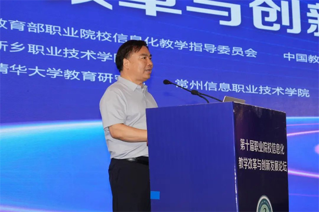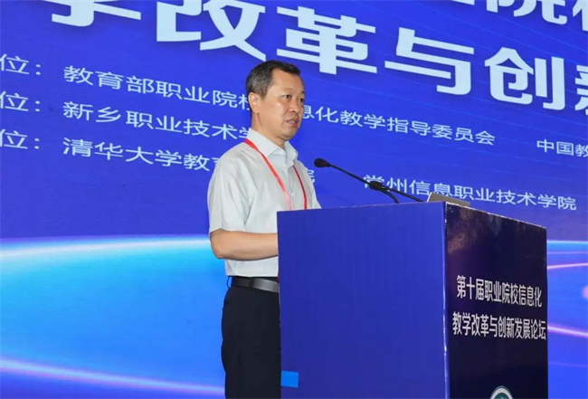 中新河南網(wǎng)7月19日電( 閆紅瑩 羅靜 ) 7月17日至18日,以“推進(jìn)人智協(xié)同,共促數(shù)字職教”為主題的第十屆職業(yè)院校信息化教學(xué)改革與創(chuàng)新發(fā)展論壇在新鄉(xiāng)舉行。本次論壇由教育部職業(yè)院校信息化教學(xué)指導(dǎo)委員會、中國教育發(fā)展戰(zhàn)略學(xué)會未來教育專業(yè)委員會主辦,新鄉(xiāng)職業(yè)技術(shù)學(xué)院承辦,清華大學(xué)教育研究院、常州信息職業(yè)技術(shù)學(xué)院協(xié)辦。
