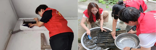 志愿者為村民清洗空調