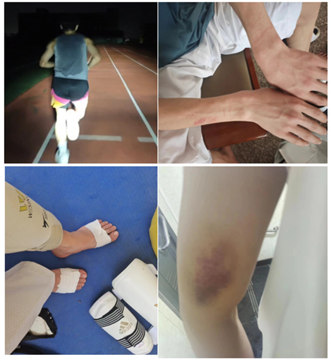 榮譽(yù)背后皆是汗水和不易,特別是對(duì)抗性體育競(jìng)賽免不了會(huì)受傷。在此次省級(jí)比賽現(xiàn)場(chǎng)便出現(xiàn)了意外,王逸飛同學(xué)在競(jìng)技男子63KG,1/8進(jìn)入1/4比賽時(shí),胳膊受傷,但是他堅(jiān)持完成了該場(chǎng)比賽最后一局,最終獲得勝利。賽后,他被醫(yī)生診斷為骨折,按照比賽要求,只能被迫放棄比賽。胡鵬老師也在比賽期間,連續(xù)高燒兩天,仍然堅(jiān)持為參賽學(xué)生加油鼓氣和作賽事指導(dǎo)。無論是運(yùn)動(dòng)員還是教練員在這次比賽中都充分展示了永不放棄,敢于拼搏的體育精神。