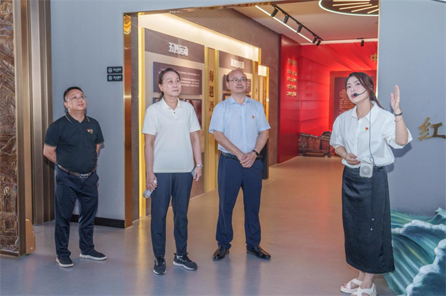 中新河南網(wǎng)7月29日電(翦陽(yáng)鑫) 為落實(shí)“立德樹(shù)人”根本任務(wù),將黨的創(chuàng)新理論、百年歷史和中國(guó)特色社會(huì)主義偉大實(shí)踐全面融入教育教學(xué)全過(guò)程,進(jìn)一步加強(qiáng)大思政課建設(shè),7月25日,湖南財(cái)政經(jīng)濟(jì)學(xué)院黨委副書(shū)記蘇玲、馬克思主義學(xué)院黃建躍、部分教師代表到湖南涉外經(jīng)濟(jì)學(xué)院黨建與思政教育基地調(diào)研交流。湖南涉外經(jīng)濟(jì)學(xué)院黨委書(shū)記、督導(dǎo)專(zhuān)員楊念,校黨委委員、副校長(zhǎng)鞠晨曦,校黨委宣傳部部長(zhǎng)戴薇參加此次活動(dòng)。