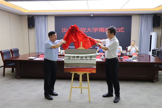 儀式上,魯書喜和劉國朝共同為汝州開放大學(xué)揭牌。