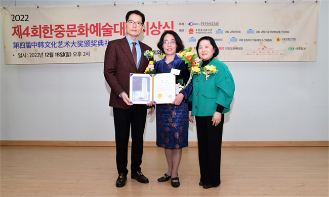 為推動(dòng)中韓民間人文交流,她組織并參與了大韓民國漢語演講大賽、韓國中學(xué)生唱中國歌大賽、中國故事會(huì)等多項(xiàng)活動(dòng)。在中韓建交30周年的中韓歌曲歌唱大賽中獲得特別獎(jiǎng)。2022年,因工作成績突出,被首爾市議會(huì)議長授予“韓中文化藝術(shù)大獎(jiǎng)”。同時(shí)還被授予“優(yōu)秀教師”榮譽(yù)稱號,圓滿完成了國家公派教師外派任教的工作。