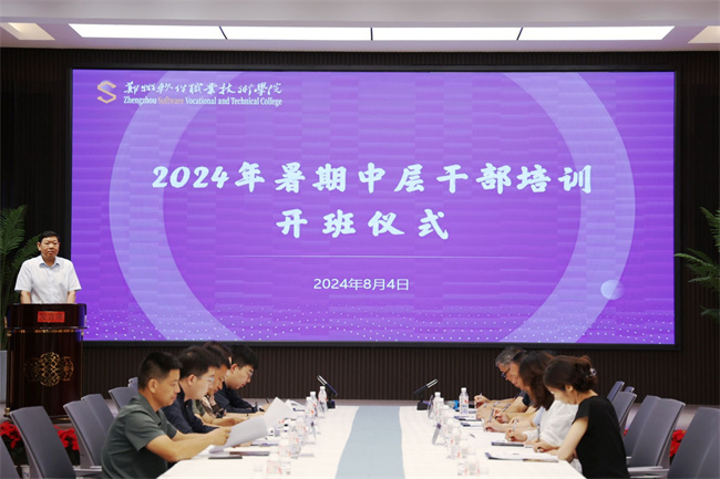 中新河南網(wǎng)8月8日電(馬鵬) 為進一步加強學校干部隊伍建設,提升廣大干部綜合素質和能力,8月3日至8月6日,鄭州軟件職業(yè)技術學院舉辦2024年暑期中層干部培訓班,學校董事長任艷丹,校領導班子孫振營、秦方奇、許心思、馬俊偉,共同出席開班儀式,全校在鄭中層干部參加。