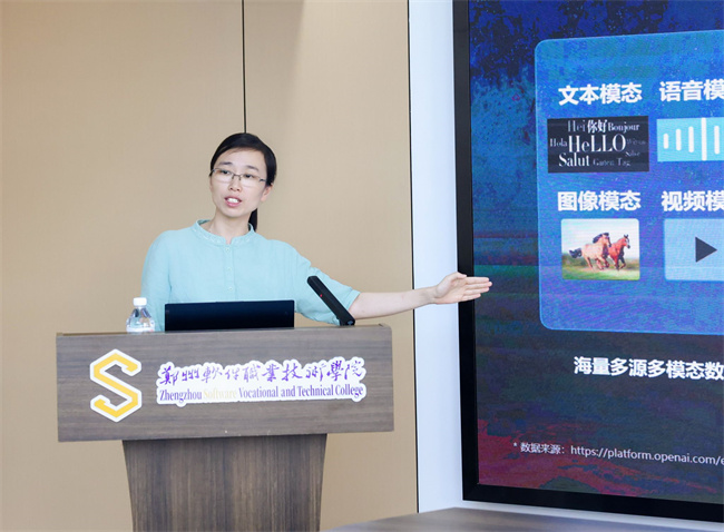 專家報告環(huán)節(jié),科大訊飛高教業(yè)務線人工智能方向技術總監(jiān)江金鳳博士圍繞人工智能趨勢、大模型教育變革與挑戰(zhàn)及大模型在教育中的應用,作了題為《人工智能引領未來科技,大模型助力“哲學”變革》報告;河南新世紀拓普公司總經(jīng)理韓尊勝則以《高校產(chǎn)教融合路徑》為題,圍繞AI產(chǎn)業(yè)分布、結構及人才培養(yǎng)體系,深入剖析了人工智能人才培養(yǎng)現(xiàn)狀與產(chǎn)教融合模式。