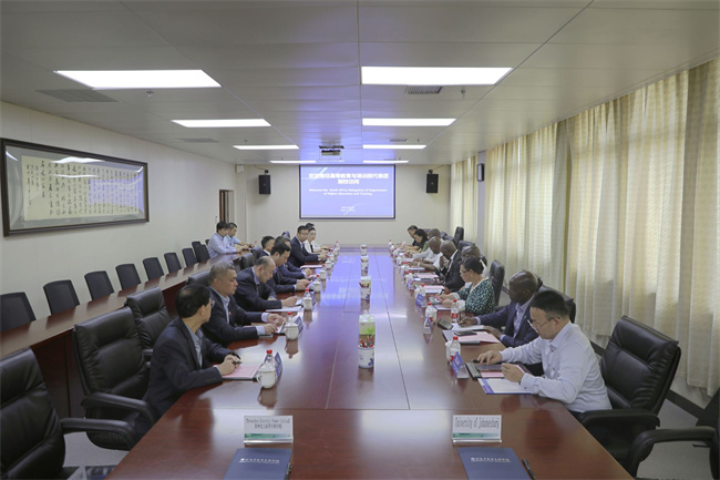 會上黨委書記楊義波對代表團的來訪表示了歡迎,介紹了學(xué)校的基本情況、辦學(xué)理念以及學(xué)校職業(yè)教育國際化發(fā)展的新思路、新模式、新成果。他表示,近年來,中國與非洲的合作不斷深化,成果豐碩,充滿活力,中國也是非洲實現(xiàn)能源轉(zhuǎn)型的重要合作伙伴,通過眾多清潔能源發(fā)電和電網(wǎng)項目,助力非洲國家更好地利用太陽能、水能、風(fēng)能和地?zé)崮堋D戏歉叩冉逃c培訓(xùn)部副總司長尊古先生在會上表示,南非與中國已經(jīng)在自然資源等領(lǐng)域開展合作,在可再生能源開發(fā)和可持續(xù)發(fā)展領(lǐng)域,中國推進太陽能產(chǎn)業(yè)發(fā)展并將其作為電力供應(yīng)的重要組成部分,雙方進一步加強技術(shù)合作仍有很大空間。中國在電力技術(shù)、人工智能、可再生能源等方面積累了豐富的專業(yè)知識,將這些技術(shù)推廣到非洲,可提高當(dāng)?shù)啬贻p人專業(yè)技能和就業(yè)率,助力非洲產(chǎn)業(yè)鏈升級轉(zhuǎn)型,提高非洲產(chǎn)品附加值。也希望目前在學(xué)校學(xué)習(xí)的20名南非留學(xué)生能夠?qū)W(xué)到的技術(shù)和知識帶回祖國,充分發(fā)揮“傳幫帶”輻射作用,有效促進電力類產(chǎn)業(yè)發(fā)展及專業(yè)人員隊伍建設(shè)。在中南非關(guān)系的“黃金時代”,期待兩國在電力及綠色能源職業(yè)教育和技能培訓(xùn)方面有長足發(fā)展,為實現(xiàn)持久和平和繁榮的美好世界貢獻力量。