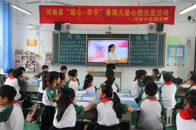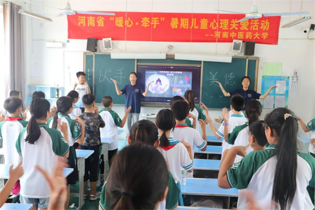 該活動是河南中醫(yī)藥大學(xué)攜手河南省婦聯(lián)開展的暑期社會心理服務(wù)項目,同時入選共青團中央維護青少年權(quán)益部、中國青年報社開展的2024年全國大學(xué)生暑期“三下鄉(xiāng)”社會實踐之“心理健康青春行”專項活動;顒佑珊幽鲜「咝9鶑┫夹睦斫】到逃麕煿ぷ魇覉F隊成員指導(dǎo),帶領(lǐng)心理社團和心理委員一行16人組成“青”心筑夢實踐團,開展青少年心理健康服務(wù)活動。據(jù)悉,今年通過“心科普”“心服務(wù)”“心調(diào)研”等方式,運用醫(yī)學(xué)專業(yè)知識與心理健康知識,開展了一系列豐富多彩、寓教于樂的實踐活動,旨在通過多元化教學(xué)手段,促進兒童身心健康,傳承弘揚中華優(yōu)秀傳統(tǒng)文化,同時通過個案訪談、心理咨詢等方式,輔導(dǎo)改善困境兒童的心理及情感問題,為有效開展關(guān)愛服務(wù)工作提供依據(jù),助力兒童心理健康教育優(yōu)質(zhì)均衡發(fā)展,營造“人人關(guān)注未成年心理健康”的良好社會氛圍。