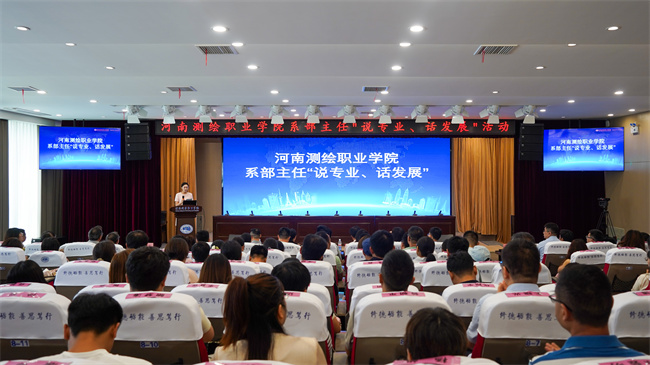 中新河南網(wǎng)8月29日電(陳賀 楊國政 鄭嶸淇 楊笑塵) 8月27日,河南測繪職業(yè)學(xué)院在多功能報告廳舉辦系部主任“說專業(yè)、話發(fā)展”活動。校黨委書記張樹嶺,校黨委副書記、校長張凌杰,校黨委副書記、工會主席李駿元,校黨委委員、紀(jì)委書記郭書克出席活動;顒友埩⒂嵓瘓F校企合作總負(fù)責(zé)人汪寶峰、黃河水利職業(yè)技術(shù)學(xué)院陳琳、北京數(shù)聯(lián)空間科技股份有限公司總經(jīng)理倪涵、河南新世紀(jì)拓普電子技術(shù)有限公司總經(jīng)理韓尊勝、河南財政金融學(xué)院藝術(shù)設(shè)計學(xué)院院長郭浩五位專家進行現(xiàn)場點評。150余名教師代表參與活動。