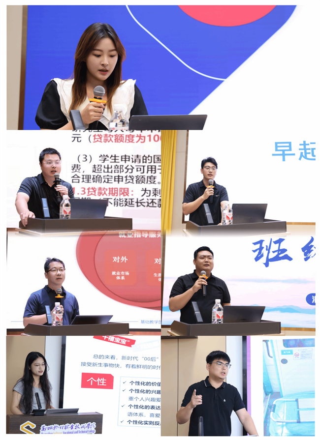 團(tuán)委李田文老師以《如何培養(yǎng)一支能干的學(xué)生干部隊伍》為題,講解如何培養(yǎng)一支既有能力又具責(zé)任感的學(xué)生干部隊伍;學(xué)生資助中心胡洋老師對學(xué)生資助工作進(jìn)行了詳細(xì)解讀;職業(yè)生涯規(guī)劃教師朱含針對學(xué)生就業(yè)指導(dǎo)進(jìn)行專題培訓(xùn);輔導(dǎo)員郝志鵬、張曉鵬、葉海月、劉延、張煒倩分別以《輔導(dǎo)員一日常規(guī)的落實與規(guī)范》《如何在活動中提升班級凝聚力》《危機(jī)事件的應(yīng)急處理》《軍訓(xùn)當(dāng)中遇到的困難及應(yīng)對措施》《如何開好每一場班會》為題分享工作經(jīng)驗與典型案例,為參訓(xùn)學(xué)員“精準(zhǔn)賦能”,指導(dǎo)參訓(xùn)學(xué)員在實踐中鍛煉,在鍛煉中學(xué)習(xí),在學(xué)習(xí)中提升,在提升中成長。