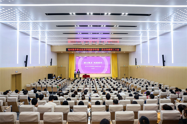 中新河南網(wǎng)9月5日電(文/馬鵬 圖/吳延豪) 錨定“雙高”指向旗,凝心聚力再出發(fā)。2024年9月3日至9月4日,鄭州軟件職業(yè)技術(shù)學(xué)院在圖書館報(bào)告廳召開2024-2025學(xué)年第一次全體教職工大會暨培訓(xùn)會。學(xué)校董事長任艷丹,校領(lǐng)導(dǎo)秦方奇、孫振營、鄭麗娜、許心思、馬俊偉出席會議,在校中層干部及全體教職工參加。