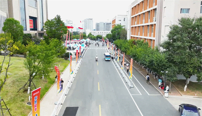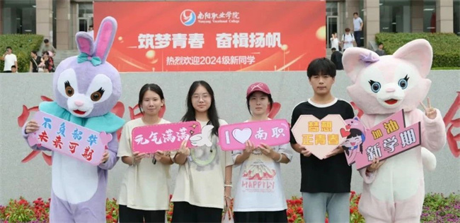 迎新現(xiàn)場,橫幅高掛,彩旗飄揚