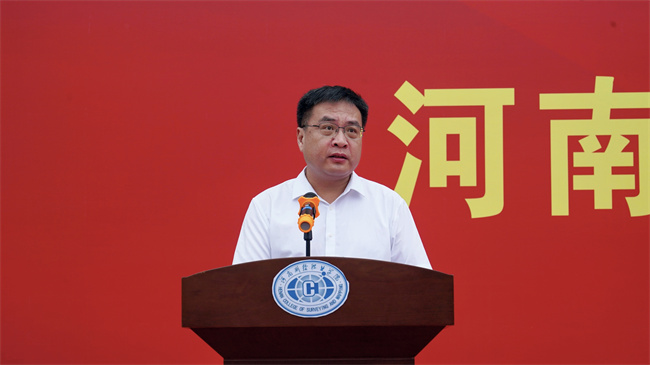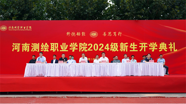 中新河南網(wǎng)9月14日電(文/趙亞星 圖/楊國政 鄭嶸淇 楊笑塵) 9月13日,河南測繪職業(yè)學(xué)院在象湖校區(qū)運動場舉行2024級新生開學(xué)典禮。校黨委書記張樹嶺,黨委副書記、校長張凌杰,黨委副書記、工會主席李駿元,黨委委員、副校長李明,黨委委員、紀委書記郭書克,黨委委員、副校長陳宏章出席典禮。相關(guān)職能部門負責(zé)人、各院系負責(zé)人、新生班輔導(dǎo)員及全體2024級新生參加典禮。開學(xué)典禮由郭書克主持。