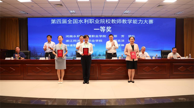 王韶華宣布了獲獎名單,大賽決出優(yōu)秀教學(xué)團(tuán)隊一等獎3個、二等獎6個,優(yōu)秀組織單位獎5個。他指出,教師教學(xué)能力大賽是持續(xù)推進(jìn)教育教學(xué)質(zhì)量提升的有效載體。大賽不僅是一場教學(xué)的競技,更是一次教育理念的交流,一次教學(xué)方法的創(chuàng)新,一次教育情懷的升華。希望各職業(yè)院校深入落實黨和國家關(guān)于新時代教師隊伍建設(shè)的決策部署,著力打造適應(yīng)水利專業(yè)高水平建設(shè)的高素質(zhì)“雙師型”教師隊伍,以賽促改,加大教育教學(xué)改革,扎實推進(jìn)三教改革,為我國水利職業(yè)教育發(fā)展注入新的活力,為培養(yǎng)更多高素質(zhì)的水利人才貢獻(xiàn)力量。