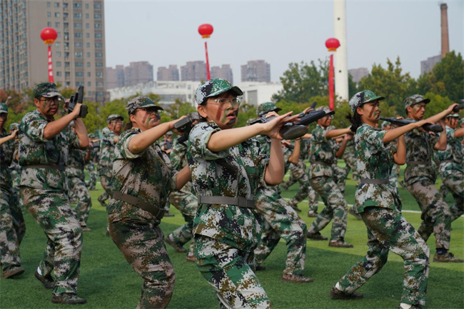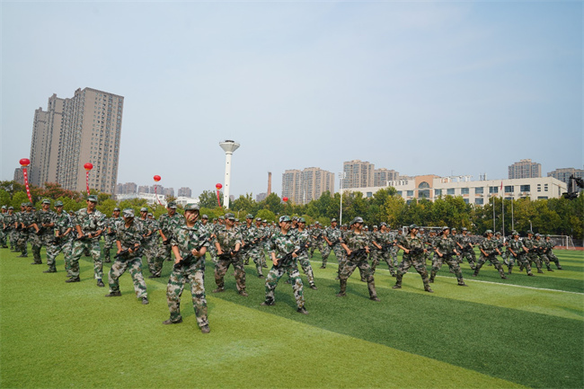 大會在莊嚴的國歌聲中拉開序幕,經(jīng)歷軍訓的4300名新生昂首挺胸,步履鏗鏘,活力飛揚,彰顯無限激情與青春本色。學子們以飽滿的精神、挺拔的軍姿、整齊的步伐和洪亮的口號,展現(xiàn)出令行禁止的作風與堅韌不拔的意志。匯報表演環(huán)節(jié),擒體拳、匕首操、戰(zhàn)術表演方陣陸續(xù)出場,他們精神抖擻、英姿颯爽、氣勢如虹,贏得全場師生熱烈掌聲。黨委副書記董娣宣讀2024級軍訓工作表彰決定,校領導及在場嘉賓為獲獎的集體和個人頒獎,勉勵受表彰的集體和個人珍惜榮譽,百尺竿頭更進一步。