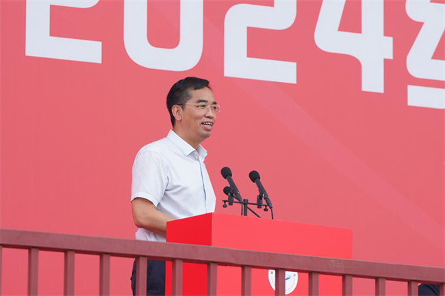 最后,校長李曉東作開學致辭。他代表學校向全體新同學表示熱烈歡迎和衷心的祝賀,同時以“正德明志,經(jīng)世致用”為題對鄭財院學子提出殷切希望:一是順勢而為,大有可為。希望同學們乘時代東風,努力在大有可為的新時代立大志、明大德,順勢而為、追光而行,譜寫青春華章;二是做好規(guī)劃,鎖定目標。希望同學們以勤勉之為夯實青春底盤,盡早將學業(yè)規(guī)劃與職業(yè)規(guī)劃相結(jié)合、短期規(guī)劃與長遠規(guī)劃相結(jié)合,擔大任、成大才,努力寫好青春答卷。三是求知篤行,苦練技能。希望同學們將知識應用于實際,成為有理想、有學識的匠師能人,用技能展現(xiàn)青春作為、彰顯青春風采!澆花澆根,育人育心,李曉東表示,全校教職員工會牢記為黨育人、為國育才初心使命,以良好的師德師風幫助學生筑夢、追夢、圓夢,讓每一位鄭財院學子在校園沃土的滋養(yǎng)中扎根追夢、盡展才華!