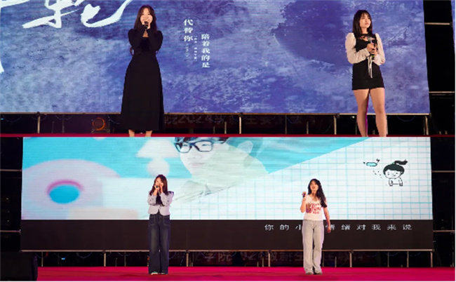 晚會(huì)內(nèi)容精彩紛呈,分為“贊禮75華誕同歡歌、如約而至河測院、奮斗青春正當(dāng)時(shí)、擔(dān)當(dāng)責(zé)任助復(fù)興”四個(gè)篇章,節(jié)目涵蓋了歌曲、舞蹈、詩朗誦、樂器演奏等多種形式。晚會(huì)在藝術(shù)系合唱團(tuán)的《追尋》歌聲中拉開序幕,舞蹈社的《唱支山歌給黨聽》舞蹈表演更是將現(xiàn)場氣氛推向高潮;盧笛老師葫蘆絲獨(dú)奏《月光下的鳳尾竹》收獲了全場的熱烈掌聲;空間信息工程系教師隊(duì)伍表演的《最炫民族風(fēng)》彰顯了學(xué)校教師活力四射、激情洋溢的精神風(fēng)貌;獨(dú)舞《芳華》讓在場的觀眾真正感受到了舞蹈的魅力;輔導(dǎo)員們帶來的詩朗誦《長大的模樣》向新生訴說著這是新的開始、也是新的希望。最后,演出在藝術(shù)系新生代表合唱的《我的祖國》歌聲中圓滿落下帷幕。