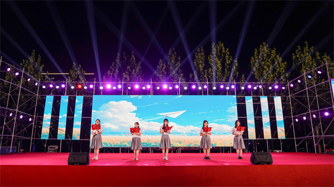 中新河南網(wǎng)10月1日電(苗睿) 9月28日晚,河南測繪職業(yè)學(xué)院“禮贊新中國 奮進(jìn)新時(shí)代”慶祝中華人民共和國成立75周年暨2024年迎新生文藝晚會(huì)在運(yùn)動(dòng)場精彩上演。校黨委副書記、校長張凌杰,校黨委委員、校紀(jì)委書記郭書克,校黨委委員、副校長陳宏章及各部門負(fù)責(zé)人,各院系領(lǐng)導(dǎo)、老師與2024級新生齊聚一堂,共同觀看迎新晚會(huì)。